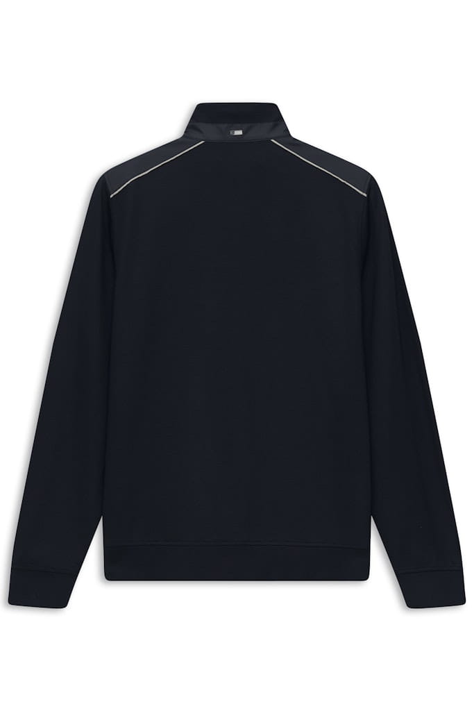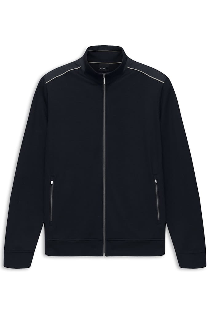 Bluza męska Bugatti w klasycznym czarnym kolorze to połączenie nowoczesnego stylu i codziennego komfortu. Model zapinany na zamek, z elegancką stójką, doskonale sprawdzi się w stylizacjach casual i smart casual. Wykonana z wysokiej jakości, gładkiej dzianiny zapewnia wygodę noszenia oraz estetyczny wygląd przez cały dzień. Subtelne kontrastowe przeszycia na ramionach podkreślają nowoczesny charakter bluzy. Dwie boczne kieszenie zapinane na zamek zwiększają jej funkcjonalność. Idealny wybór dla mężczyzn ceniących jakość i ponadczasową elegancję marki Bugatti.