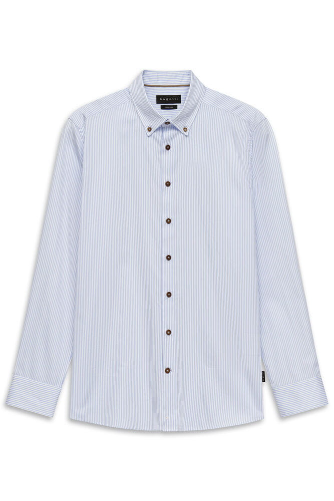Męska koszula Bugatti to klasyczna propozycja, która łączy elegancję z codziennym komfortem noszenia. Wykonana z wysokiej jakości bawełny, zapewnia przewiewność, miękkość i wygodę przez cały dzień. Subtelny wzór w paski nadaje koszuli ponadczasowego charakteru, idealnego zarówno do stylizacji biznesowych, jak i casualowych. Klasyczny kołnierzyk zapinany na guziki oraz staranne wykończenie podkreślają dbałość o detale typową dla marki Bugatti.