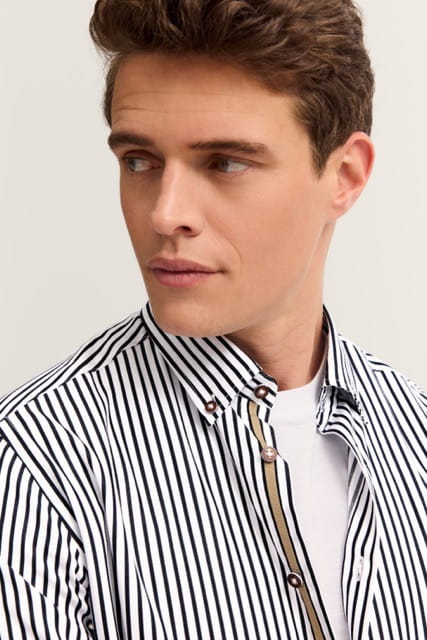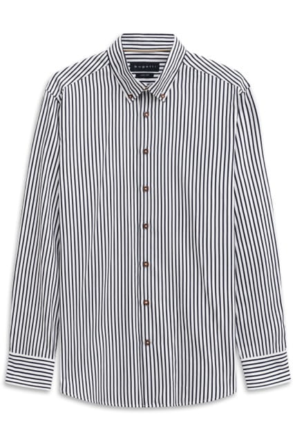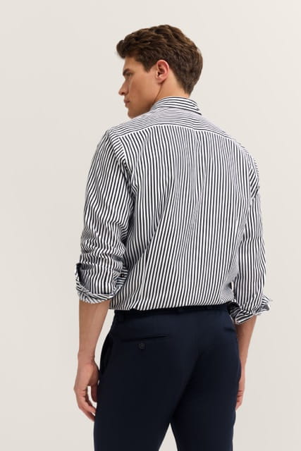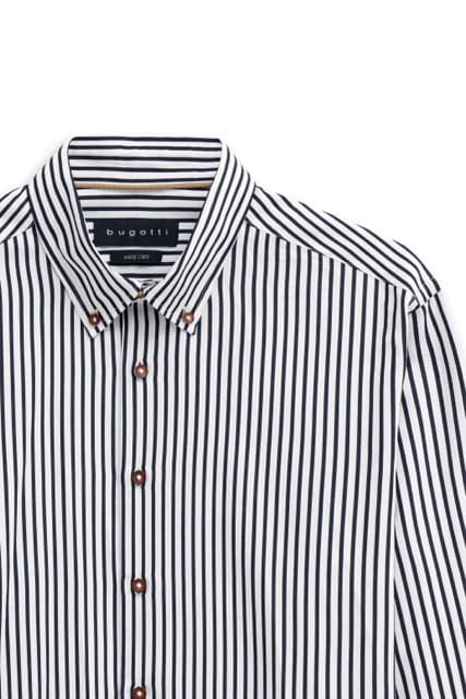Koszula męska bugatti, prezentująca elegancki i nowoczesny design. Posiada nowoczesny krój Modern Fit z długimi rękawami oraz kołnierzykiem, co czyni ją idealnym wyborem zarówno na formalne, jak i codzienne okazje.