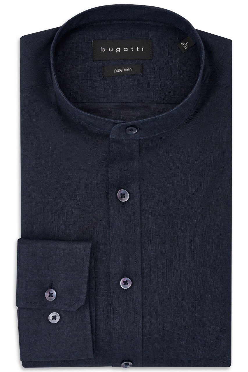 Lniana koszula męska bugatti navy ze stójką