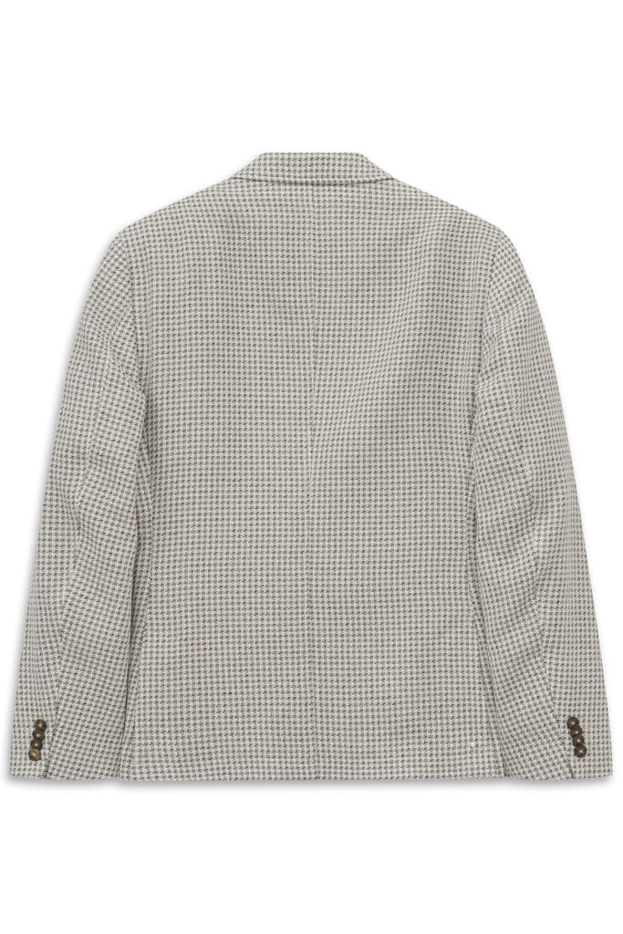 Męska marynarka Bugatti z lnem to elegancka propozycja idealna do stylizacji smart casual i półformalnych. Wykonana z wysokiej jakości tkaniny o subtelnym, drobnym wzorze, nadaje całości lekkości i nowoczesnego charakteru. Klasyczny krój z jednorzędowym zapięciem na guziki zapewnia dobre dopasowanie i komfort noszenia. Starannie wykończone detale, takie jak kieszenie z patkami i ozdobne guziki przy mankietach, podkreślają jakość wykonania. Marynarka świetnie komponuje się zarówno z koszulą i chinosami, jak i z jeansami. To uniwersalna marynarka męska Bugatti dla mężczyzn ceniących styl, elegancję i wygodę na co dzień.