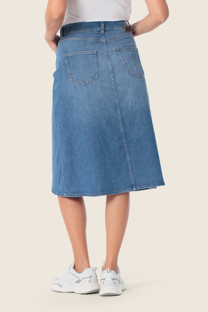 Wykonana z miękkiego, komfortowego denimu spódnica świetnie sprawdzi się w codziennych stylizacjach. Model utrzymany jest w klasycznym odcieniu niebieskiego jeansu, dzięki czemu łatwo dopasować go do T-shirtów, bluzek czy lekkich swetrów, tworząc stylowy look na co dzień.